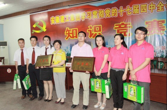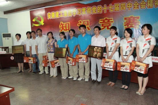 這次知識(shí)競(jìng)賽活動(dòng)由紀(jì)委、工會(huì)、黨委工作部、團(tuán)委聯(lián)合主辦,旨在深入學(xué)習(xí)宣傳貫徹黨的十七屆四中全會(huì)精神,集團(tuán)公司首次黨代會(huì)和年初工作會(huì)議精神。競(jìng)賽內(nèi)容包括黨的十七屆四中全會(huì)《決定》、《國有企業(yè)領(lǐng)導(dǎo)人員廉潔從業(yè)若干規(guī)定》、全省國有企業(yè)黨建工作會(huì)議精神、集團(tuán)首次黨代會(huì)精神和集團(tuán)2010年工作會(huì)議精神。所屬各單位積極準(zhǔn)備、認(rèn)真組織,共有18支代表隊(duì)參賽。經(jīng)過兩輪四場(chǎng)緊張角逐,安徽建工海外公司榮獲一等獎(jiǎng);省三建公司、省路橋公司榮獲二等獎(jiǎng);安徽建工國內(nèi)公司、安徽建機(jī)公司、省二建公司榮獲三等獎(jiǎng)。(安徽建工集團(tuán)文明辦)