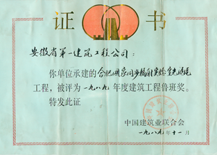 該工程竣工后經檢查驗收,評為優良工程,經安徽省建設廳批準評定為安徽省施工優質工程,并榮獲1989年度國家級優質工程“魯班獎”。 | ||||||||