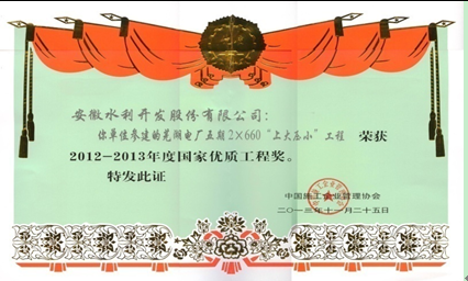 蕪湖電廠五期2×660“上大壓小”工程項目部--國家優質工程獎