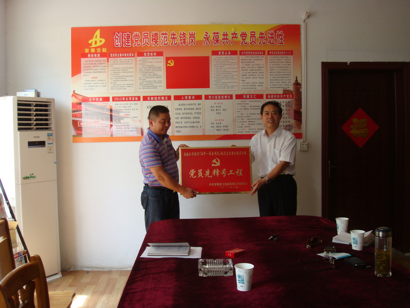 7月31日-8月1日,集團公司黨委副書記、副董事長李長斌在黨委工作部同志陪同下趕赴蚌埠和宿州,深入安徽水利和交航公司申報黨員先鋒號工程的三個項目部進行調研慰問和授牌。集團公司黨委委員、董事、安徽水利總經理楊廣亮,集團公司黨委委員、副總經理霍向東,集團公司紀委書記、工會主席牛曙東出席了水利公司兩個黨員先鋒號工程授牌儀式。交航公司黨委副書記曹興堂,紀委書記、工會主席王永來陪同參加澮河航道疏浚工程授牌儀式。