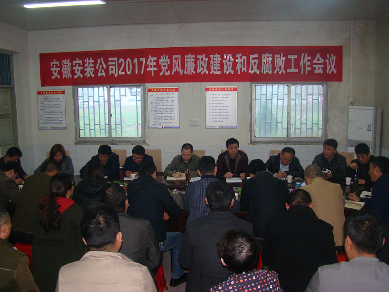 3月30日上午,安徽安裝公司黨委在安徽省白湖監(jiān)獄管理分局罪犯醫(yī)療綜合樓工程項目部召開2017年黨風廉政建設和反腐敗工作會議,公司領導班子成員、中層以上管理人員、部分項目經理及白湖監(jiān)獄罪犯綜合樓項目管理干部50多人參加了會議。會議由公司紀委書記、工會主席李寬旭主持。