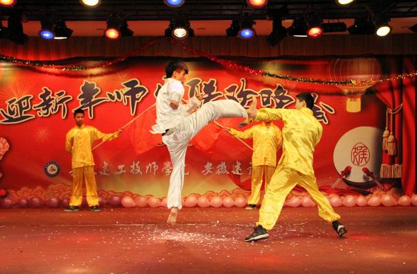12月30日晚,安徽建工技師學院2016年迎新年師生聯歡晚會在學校禮堂隆重舉行。校長張衛東、黨委書記錢森林、安徽建工建筑材料有限公司副總經理徐友修、工會主席韓振遠,安徽建工技師學院副校長任建設、周元清、呂良玉,紀委書記、工會主席龔維加與各處室、系部負責同志和廣大師生員工、部分離退休老同志參加了聯歡。
