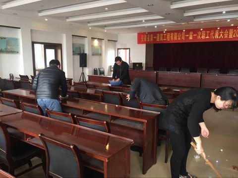 為了弘揚“奉獻、友愛、互助、進步”的志愿服務精神,3月14日下午,在公司改建后的首屆職代會召開前夕,安徽一建團委組織青年志愿者服務隊開展清掃會場、美化公司辦公環境的活動,志愿者們個個干勁十足,認真仔細的清掃會場和樓梯通道的每一個角落,不留一塊死角,并對會場進行整體布置和安排。另外,會議召開期間志愿們還會進行會中服務,助力職代會圓滿順利召開。