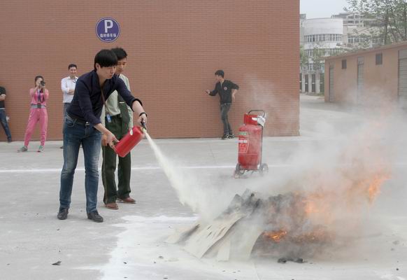 此次消防演練活動分為講座和實地滅火兩大部分。來自經開區消防支隊的消防員胡強向大家介紹了生活中火災可能會發生的隱患以及火災的緊急處理辦法、滅火辦法、逃生、自救等注意事項和滅火器的使用方法。在認真聽講及觀摩后,老師同學們親自體驗了現場滅火的過程。面對熊熊的火堆,大家表現非常沉著冷靜,熟練地按照滅火的步驟和方法,將燃起的大火迅速撲滅,做到了沉著冷靜面對突發情況并成功快速撲滅大火的消防標準。