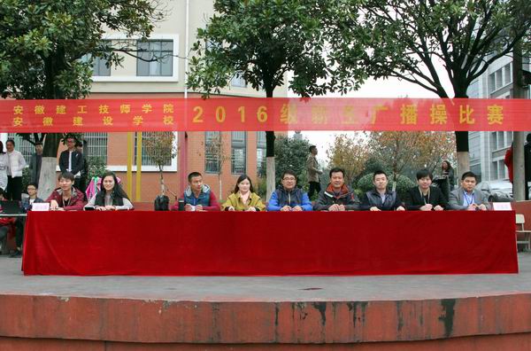 為增強學生體質,開展好學生課間操活動,提高課間操的質量,11月17日中午,安徽建工技師學院在田徑場舉行2016級學生廣播操比賽。