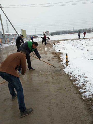 11月22日,鵝毛大雪飄滿南坪鎮。為確保項目部員工出行安全和施工便道通暢,安徽路港南坪船閘項目總工鄭金輝號召青年突擊隊的隊員們行動起來,及時清除項目部院內積雪,以確保項目部正常工作次序。任務重、時間急,突擊隊員們齊心協力,冒著寒風立即投入到掃雪工作中。鏟得鏟,掃得掃,在近兩個多小時熱火朝天、井然有序的突擊勞動后,項目部辦公室和宿舍門前、院內主要道路、施工便道的積雪被清掃干凈。項目部青年突擊隊員們以實際行動展示出路港青年風采,為抗擊低溫雨雪作出了應有的貢獻。