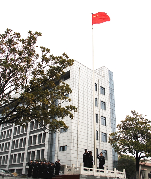 7點30分,在全體師生的注視下,我院國旗護衛隊邁著整齊的步伐護送國旗來到國旗臺。在雄渾嘹亮的國歌聲中,升旗手振臂一揮,鮮艷的五星紅旗冉冉升起。全院師生面向國旗莊嚴肅立,行注目禮,心中漾起崇高的愛國之情。