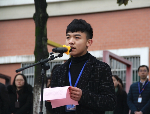 來自成教大專部的王飛同學代表全體學生做了國旗下的演講,他以“新學期,新起點”為題,號召同學們在新的學期,做一個懂禮貌、講禮儀的學生,保持身體健康,做一個快樂的學生,做一個會合作、銳意進取的學生,學習雷鋒艱苦奮斗、勤儉節約的精神,積極行動起來,把期望播種在春天的土壤里,齊心協力,迎接更美好的明天。