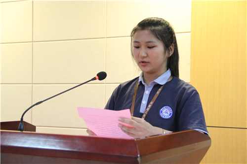 接著,來自建筑藝術系李欣蕊同學代表全體學生發言。她回顧了一學期來的學習生活體會,號召全體同學認真復習,在期末考試中取得好成績,文明離校,度過一個安全愉快有意義的暑假。