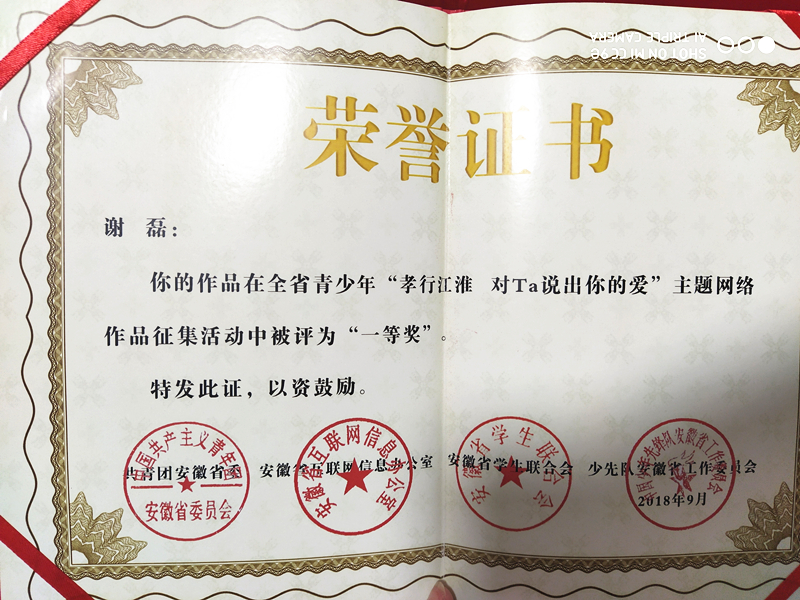 2018年團省委“孝行天下 對ta說出你的愛”主題網絡作品征集活動一等獎