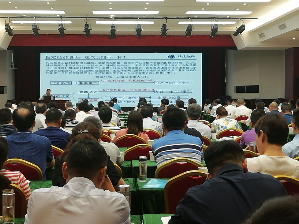 海通證券于博老師從我國(guó)國(guó)情出發(fā),緊密?chē)@人口紅利消退、舉債發(fā)展經(jīng)濟(jì),債務(wù)周期見(jiàn)頂、去杠桿四步曲,貿(mào)易摩擦再現(xiàn)、短期迎來(lái)休戰(zhàn),轉(zhuǎn)型勢(shì)在必行、經(jīng)濟(jì)緩慢筑底,降利率提估值、從實(shí)物到金融等五個(gè)方面,宏觀分析了國(guó)內(nèi)經(jīng)濟(jì)發(fā)展情況,并對(duì)2019年下半年經(jīng)濟(jì)及資本市場(chǎng)進(jìn)行了展望。本次講座內(nèi)容豐富翔實(shí)、圖文并茂,與會(huì)人員聚精會(huì)神地聆聽(tīng),并認(rèn)真地做筆記。
