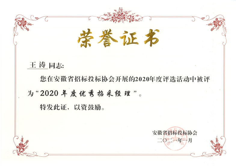 黨員、集團招標中心王濤同志榮獲安徽省招標投標協(xié)會評為