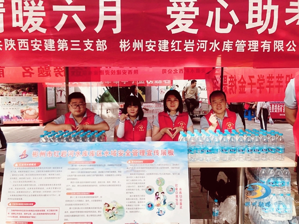 紅巖河水庫管理有限責任公司與陜西安建第三黨支部在西安交大彬州市陽光高級中學考場開展“愛心助考”公益活動,搭建愛心休息點,免費為各位考生及家長贈送礦泉水、鉛筆、橡皮等各類考試物資。