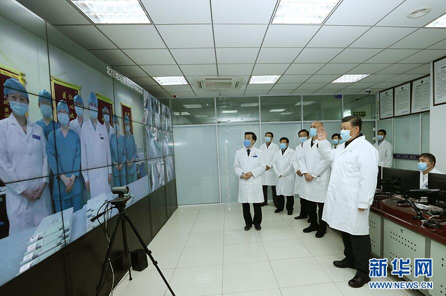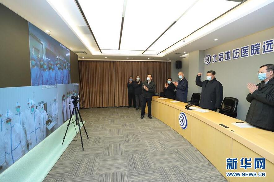 習近平十分牽掛湖北和武漢的疫情。在地壇醫院遠程診療中心,習近平通過視頻連線武漢市收治新冠肺炎患者的金銀潭醫院、協和醫院、火神山醫院,向疫情防控一線的醫務工作者、干部職工和人民解放軍指戰員了解情況、聽取意見和建議。他強調,全國廣大醫務工作者不忘初心、牢記使命,響應黨的號召,義無反顧沖上疫情防控第一線,同時間賽跑,與病魔較量,頑強拼搏、日夜奮戰,展現了對黨、對人民高度負責的精神面貌。他指出,現在疫情防控正處于膠著對壘狀態,廣大醫務工作者一定要堅持下去,發揚特別能吃苦、特別能戰斗的精神,發揮火線上的中流砥柱作用,始終把人民群眾生命安全和身體健康放在首位,全力以赴救治患者,打好武漢保衛戰、湖北保衛戰。