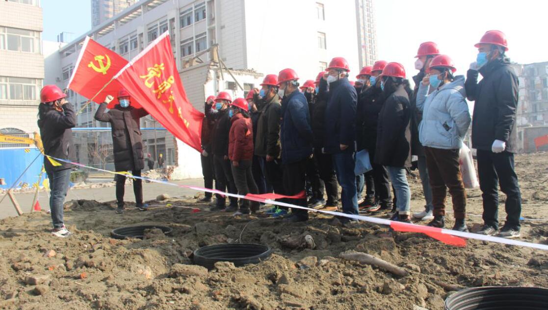 2月1日,施工機械就位,現場建筑物拆除,進行場地平整,施工主干道鋪設完成。成立黨員突擊隊,帶頭攻堅克難。即時召開誓師大會,黨總支書記王錕領誓:全力以赴,保證安全、保證質量、保證工期,堅決完成建設任務。