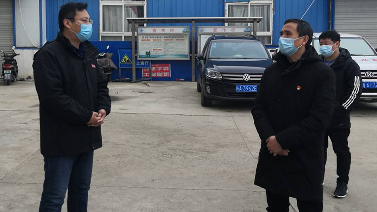 2月14日上午,固鎮(zhèn)縣住建局局長(zhǎng)陳大鵬赴安建建設(shè)公司第四工管部檢查指導(dǎo)疫情防控工作,第四工管部負(fù)責(zé)人盧朋陪同。