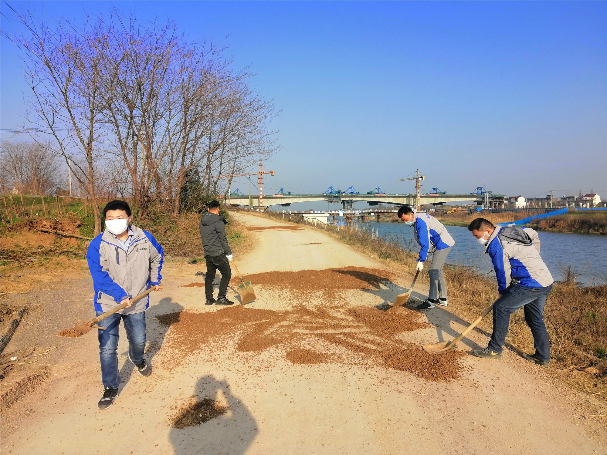 在做好項目內部防疫工作的同時,青年職工們積極與當地社區委聯系,擔負起工地周邊道路清掃、修整等工作,保障周邊居民良好的通行環境。