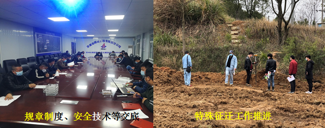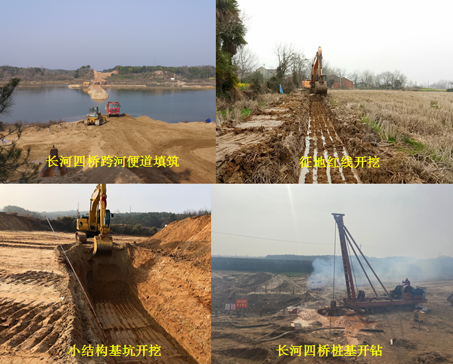 現階段,工程征遷、土源、道路、材料是四座壓在項目建設頭頂上的大山,項目部本著能開工盡量開工,不能開工創造條件開工的原則,抓住有利施工天氣,主動出擊,統籌勞務隊伍施工,合理編排施工計劃,組織精干人員,積極與地方政府、項目公司等單位進行溝通、協調工程征遷事宜。主動與縣主管部門對接取土場土源問題。對進場便道多次踏勘,深入鄉鎮、山口商談地材供應事宜,突破重重困難。3月11日,項目首根樁基順利開鉆。