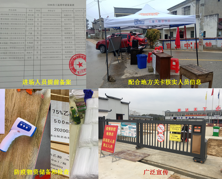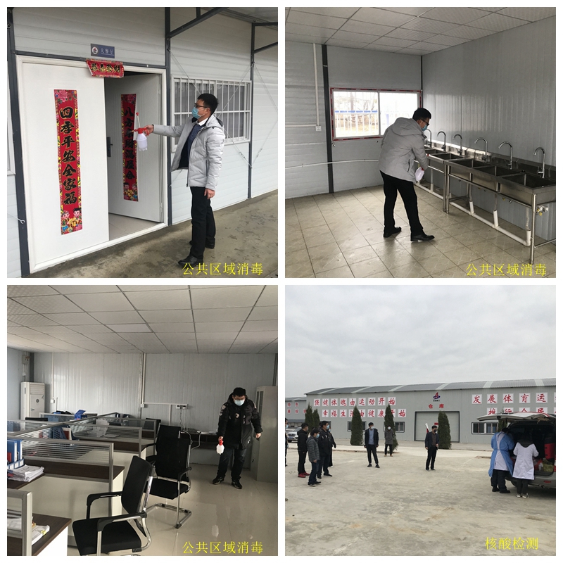 一是所有人員在返崗時均要求提前申報返崗信息,項目部對人員開展健康承諾登記、14天行程軌跡及健康碼留存等措施。二是積極聯系太湖縣防疫指揮部進行咽拭子核酸檢測,大大縮短了隔離14天的硬性規定。三是施工現場嚴格執行規范佩戴安全用具及口罩規定。四是班組儲備足夠的防疫物資。五是每天對公共區域定時消毒,食堂實行分時分餐制。六是每天檢測進場人員體溫,在醒目位置張貼宣傳畫,懸掛標語,廣泛宣傳疫情防控知識。七是采取值班制,不定期檢查班組物資儲備及施工人員個人防護情況,強化疫情防控工作的監督,為實現全年目標任務而攻堅克難。