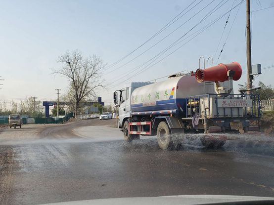 氣溫逐漸升高,項目部每天都安排灑水車多頻次清灑場區內外路面,進行噴灑、降溫降塵工作,嚴格按要求保持工地現場衛生整潔。
