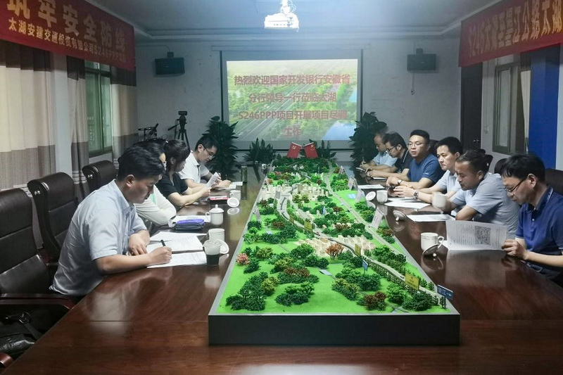 6月10日下午,國家開發銀行安徽省分行客戶六處處長申曉瑜一行赴太湖S246PPP項目現場就該項目融資工作進行洽談磋商,投資公司副總經理黃國平、財務總監王繼成及項目公司相關人員參與洽談。
