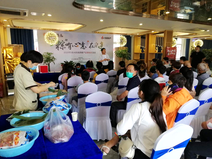 2020年6月,安建地產·尚河源筑項目以端午節回饋抽獎活動為節點,圍繞兒童節、6.18購房節、父親節、端午節,展開客戶增量來訪邀約,老客戶維護活動。為了更好的配合營銷工作抓業績、提效益,青年突擊隊上下聯動,組建拓客小組,搶抓時間,開展拓客助力營銷活動。兒童節、父親節以線上小游戲設計通過游戲禮品吸引增量客戶到訪,線下通過異業聯盟與固鎮3所幼兒園達成合作,邀約孩子與家長到達營銷中心參與親子游戲。端午節,營銷部組織了對認購簽約客戶開展了端午粽子DIY、抽家電活動,通過系列主題購房節活動既增加了客戶信任感,提升了項目品牌知名度。
