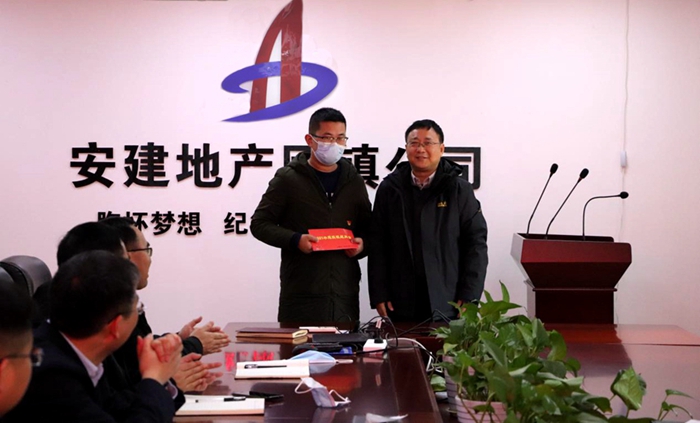 2月5日下午,安建地產黨委副書記、總經理楊海飛慰問天長公司職工徐園園。