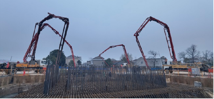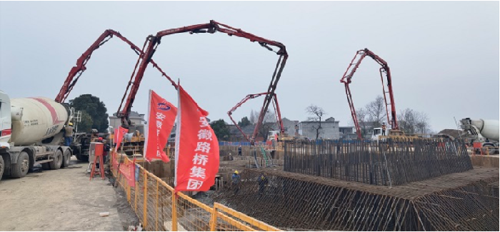 2月5日早上8點,在G347望江至宿松段一級公路項目楊灣河特大橋的施工現場,來自江蘇、河南和貴州等省的四十多名工人剛剛結束了15號主墩承臺混凝土澆筑工作。