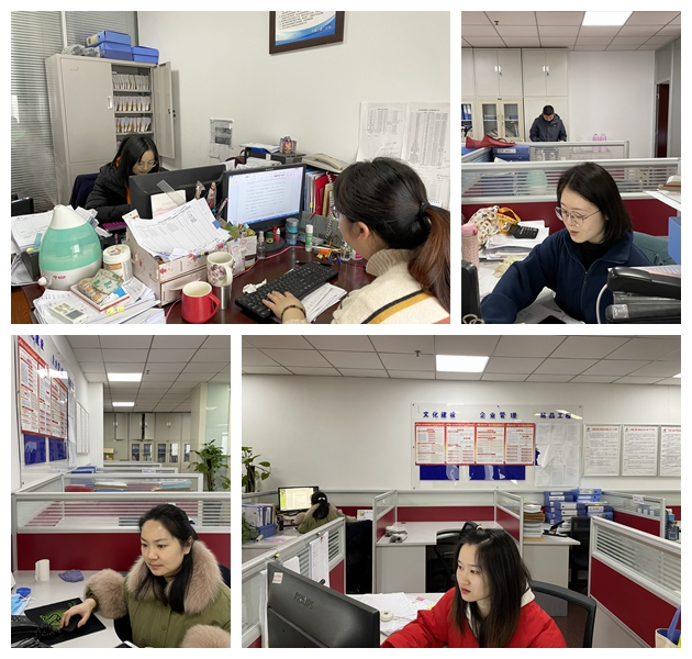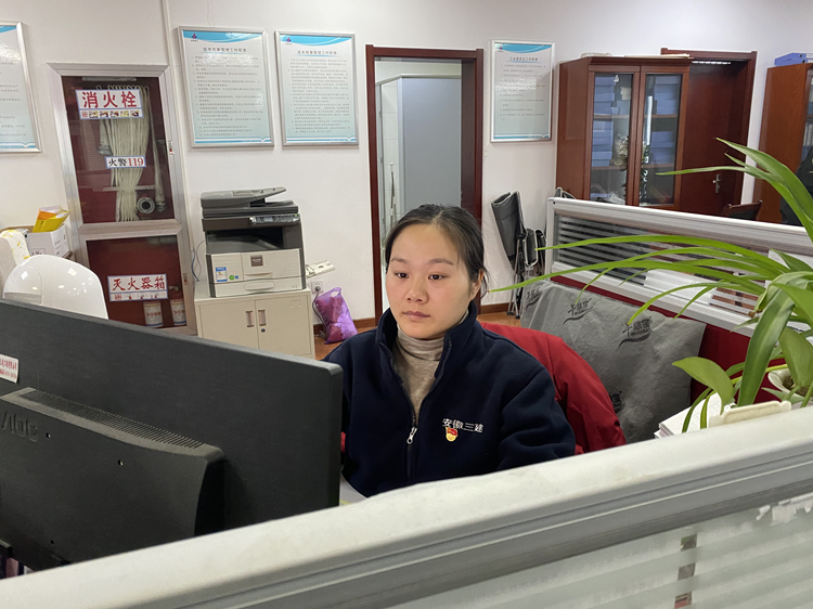 蚌埠公司淮南鼎元世家項目部核算員黃夢玲正在分解工程量報招標計劃、整理竣工項目成本資料