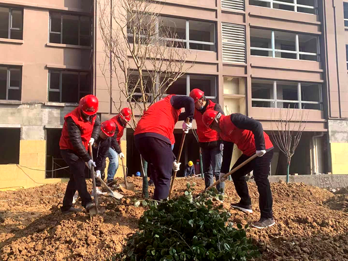 沛縣支部聯合安徽一建組織開展植樹活動。3月12日,團員青年前往安建地產·漢城源筑書香苑園林景觀處,分工協作——搬運樹苗、挖坑放樹苗、填土踏實,最后澆水灌溉,小心仔細地為春天增上一抹生機。在大家共同辛勤勞動下,書香苑園林景觀處裸露的黃土上多了一顆顆小樹苗,為明媚的春光又增添了一份綠意,更顯生機勃勃。此次活動中全體參與人員親手栽種樹苗,增強了愛樹護樹的意識,強化保護環境、愛護家園的環保觀念。