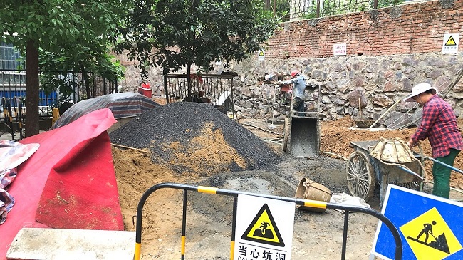 門窗公司家屬區二號院與春暉田逸園小區之間的圍墻毛石基礎出現多處凸出、空鼓、開裂脫落現象,圍墻西側即為門窗公司人行通道,若出現倒塌,極易造成人員及財產傷害事故,存在重大安全隱患。為了消除安全隱患風險,報經集團公司同意,服務中心邀請相關部門迅速進行現場勘察、方案設計、專家評審等一系列工作,施工加固工作全面展開。