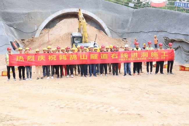 7月20日上午9時58分,伴隨著鞭炮聲和機器轟鳴聲,路橋集團寧安高速鵓鴣山隧道右線正式進入暗洞施工,標志著鵓鴣山隧道施工取得突破性進展。