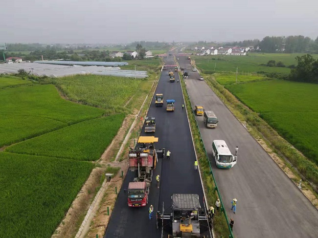 慶建黨百年,樹全線標(biāo)桿。時(shí)值“學(xué)黨史、保安康、搶工期、爭一流”勞動(dòng)競賽大干之際,8月7日上午,安徽路橋集團(tuán)S244羅崗至分路口公路工程02標(biāo)順利完成全線首個(gè)瀝青上面層試驗(yàn)段攤鋪,標(biāo)志著六安S244項(xiàng)目正式進(jìn)入瀝青上面層施工階段,朝著完工通車的目標(biāo)全力沖刺。
