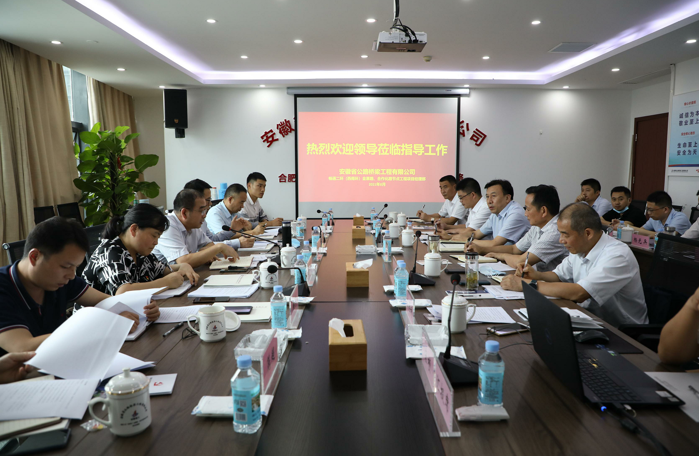 8月24日下午,省委組織部城市組織處處長、一級調研員張慶峰,省國資委黨建工作處處長馬潤華一行冒雨到集團所屬安徽路橋調研指導國企與非公企業黨建聯建試點工作。省委組織部城市組織處副處長彭曉菁,以及省委、市委組織部城組處、省國資委黨建工作處相關人員參加調研。建工控股黨委副書記、工會主席牛曙東,黨委委員、紀委書記王汪苗,建工股份黨委副書記徐文聯陪同調研并出席座談會。