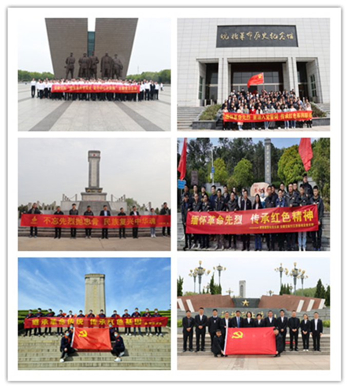 誠如公司黨辦負責人所說,公司黨委將黨史學習教育同特色主題活動結合起來。充分用好身邊紅色資源。所屬各支部紛紛就近赴紅色主題紀念館開展形式多樣的革命傳統教育。機關黨支部、引江濟淮項目黨支部赴渡江戰役紀念館聯合開展黨史學習教育主題黨日活動,亳州PPP項目支部把黨史學習教育課堂“搬到”烈士陵園,開展“緬懷革命先烈、重溫入黨誓詞、傳承紅色基因”聯建共建主題活動,淮北分公司黨支部組織全體員工到徐州淮海戰役紀念塔以“繼承革命傳統,傳承紅色基因”為主題黨建活動,三公司利辛片區到利辛縣烈士陵園舉辦以“不忘先烈拋忠骨,民族復興中華魂”為主題的清明節祭掃紀念活動。另外,機關黨支部和滁州時代樾府項目黨支部聯合組織赴定遠藕塘烈士陵園緬懷革命先烈,傳承紅色精神。積極創新主題黨日活動。5月11日下午,機關黨支部、機關工會聯合開展以“重溫黨史守初心 砥礪前行擔使命”為主題的慶祝中國共產黨成立100周年毅行活動,不僅在毅行線路中開展黨史學習教育掃碼答題活動,而且在沿途展示中國共產黨帶領中國人民站起來、富起來、強起來的百年波瀾壯闊的歷史。三公司、利辛片區、亳州PPP項目、泗縣產業園EPC項目、品創檢測公司、天水項目等黨支部積極開展各具特色的主題黨日活動,確保黨史學習教育見到實效。