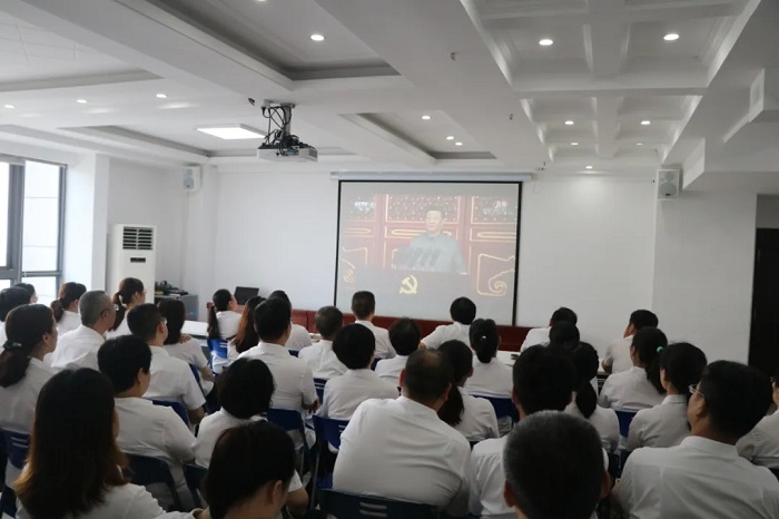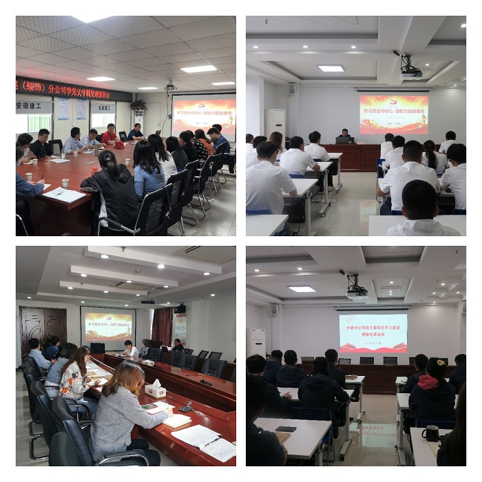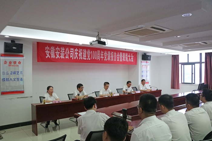 5月8日,公司黨委在阜陽潁東中醫院建設PPP項目舉辦安徽安裝公司黨委理論學習中心組(擴大)學習會暨中層管理人員培訓黨史學習教育專題黨課報告會。公司黨委書記、董事長胡六中作了題為《學黨史牢記初心 辦實事踐行使命》的黨課報告,公司中層管理人員及機關全體員工等共90余人參加;7月5日,公司黨委召開慶祝建黨100周年黨課報告暨表彰大會,公司黨委書記、董事長作了題為《風雨輝煌百年路 高歌奮進新征程》的黨課報告,公司中層管理人員及黨員干部職工等共90余人參加。