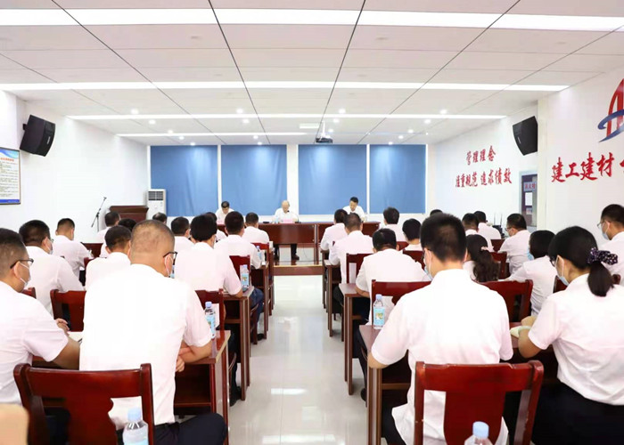 會(huì)前,趙時(shí)運(yùn)深入安徽瑞特生產(chǎn)一線,查看砂漿、混凝土生產(chǎn)線生產(chǎn)情況,并向奮戰(zhàn)在一線的職工代表送去慰問(wèn)品。安建建材領(lǐng)導(dǎo)班子、各部門(mén)負(fù)責(zé)人,安徽瑞特中層以上管理人員、黨員及業(yè)務(wù)骨干50余人聆聽(tīng)宣講。