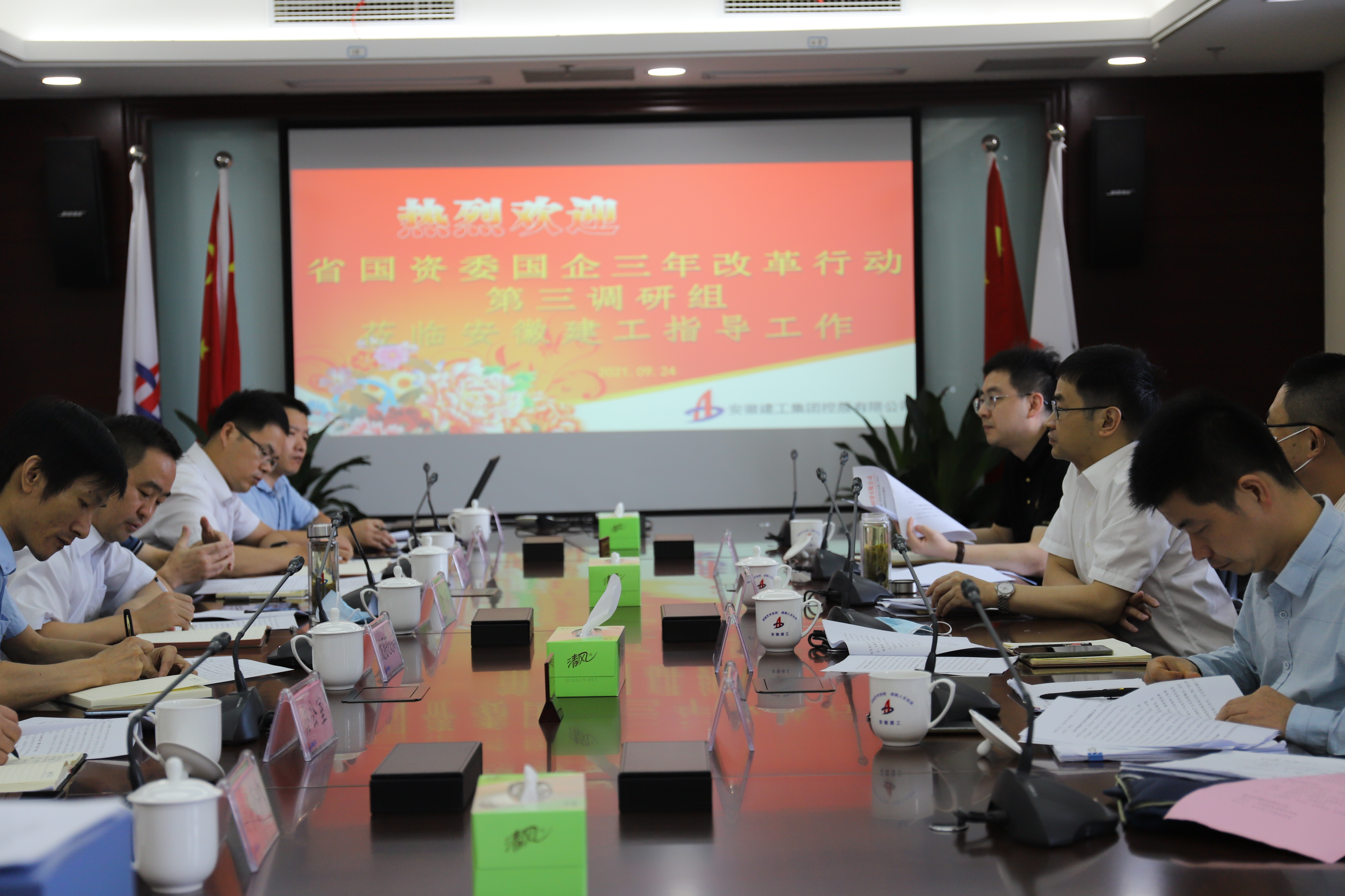 9月24日上午,省國(guó)企改革領(lǐng)導(dǎo)小組辦公室第三調(diào)研組組長(zhǎng)、省國(guó)資委產(chǎn)權(quán)管理處處長(zhǎng)陳兵率隊(duì)到安徽建工調(diào)研國(guó)企改革三年行動(dòng)重點(diǎn)任務(wù)落實(shí)情況。建工股份黨委委員、副總經(jīng)理、董事會(huì)秘書(shū)黃代接待調(diào)研組一行并參加調(diào)研會(huì)議。