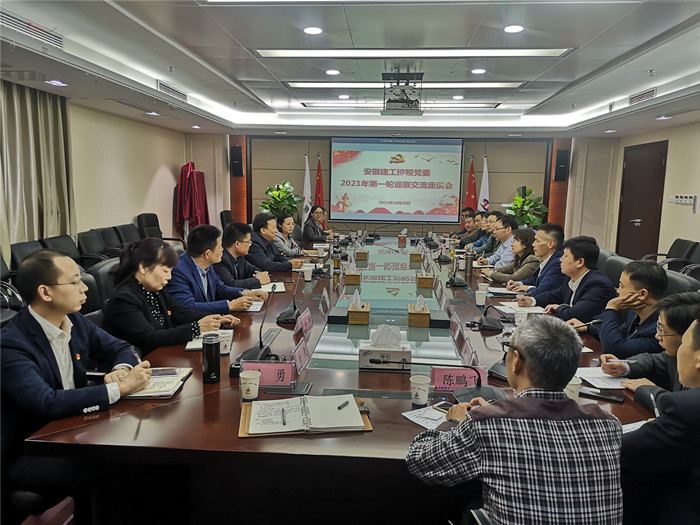 2021年10月20日下午,安徽建工控股黨委2021年第一輪巡察交流座談會在安建大廈29樓會議室召開。建工控股黨委委員、紀委書記、巡察工作領導小組副組長王汪苗出席會議并講話。集團黨委巡察辦副主任袁青嶺主持會議。