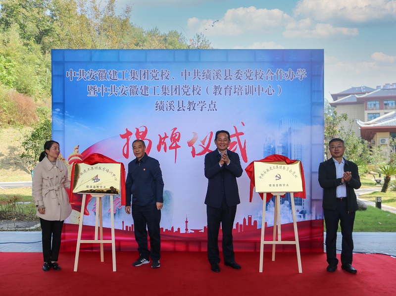 何峻在致辭中強調,安徽建工集團黨校(教育培訓中心)績溪教學點揭牌是安徽建工集團黨校和績溪縣委黨校合作辦學的新起點,也是政企深化合作交流的一項重要舉措。兩地開展合作辦學,既能充分發揮各自資源優勢,推進互信互鑒、合作共贏,又為建設新時代美麗幸福績溪和推動新時代一流安徽建工高質量發展增添助力。希望兩校圍繞“優勢互補,資源共享”開展合作辦學,充分發揮各自平臺優勢、人才優勢和資源優勢,深化在對外培訓、教學管理等領域的合作交流,為提高績溪社會主義核心價值觀干部黨性教育基地的品牌影響力,提升兩校辦學質量發揮積極作用,同時為績溪縣和安徽建工“十四五”開好局、起好步提供堅強的組織保障。