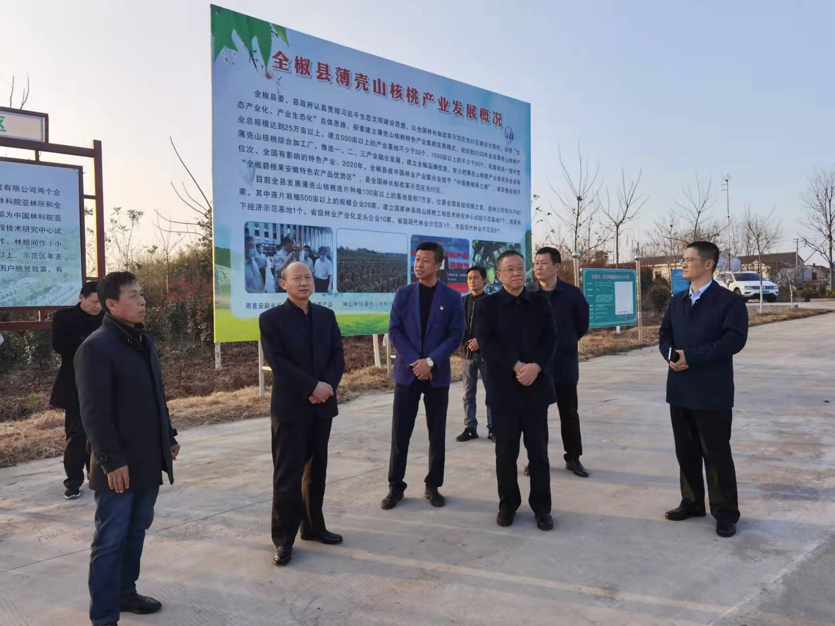 趙時運實地查看了村部建設情況和薄殼山核桃產業基地,詳細了解了駐村干部入村以后的工作和生活情況,以及太平村支柱產業發展情況。