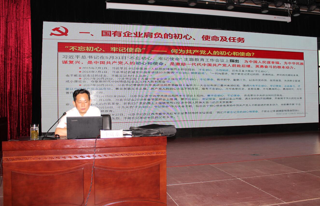牛曙東圍繞主題,分別從國有企業(yè)肩負的初心、使命及任務,當前兩級機關黨建工作存在的問題,國企加強與改進黨的領導和黨的建設的著力點三個方面,為與會人員上了一堂具有生動性、針對性和指導性的黨課。
