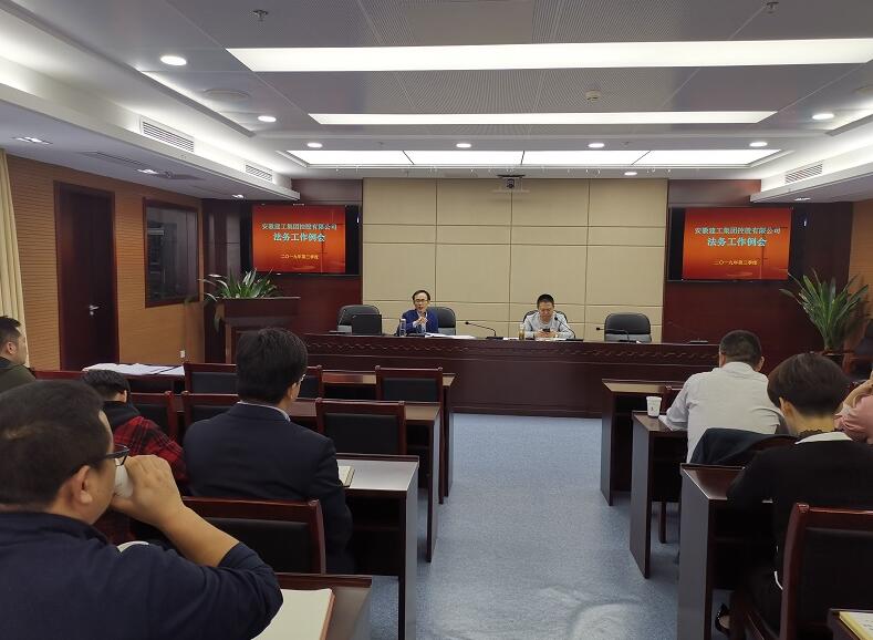 2019年10月18日下午,安徽建工集團控股有限公司2019年三季度法務工作例會在安建大廈28樓會議室召開。集團總法律顧問申玉恩以及所屬各單位法務工作人員共50余人參加會議。