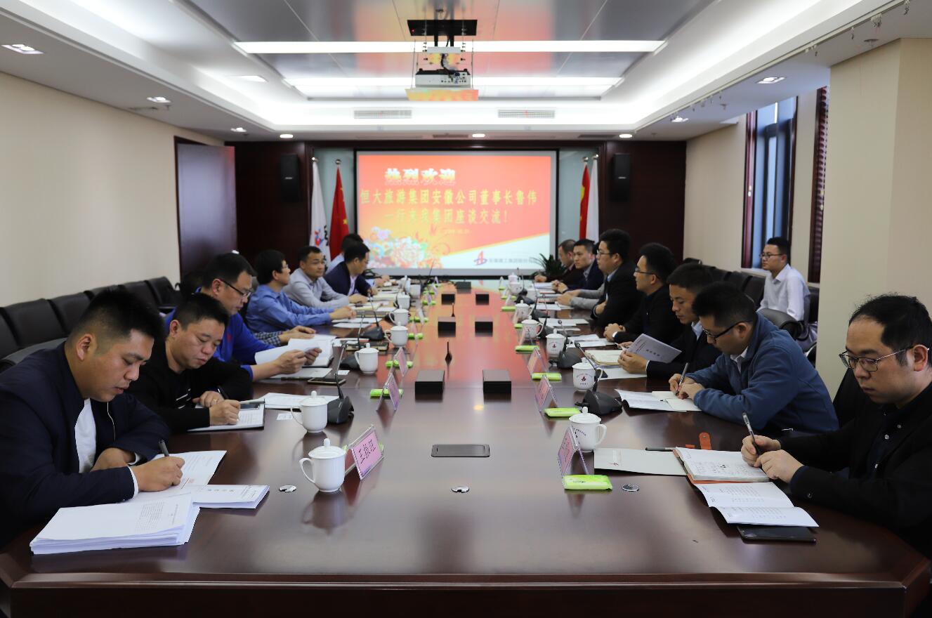 10月31日下午,建工控股黨委委員、股份公司董事長王厚良在安建國際大廈會見了來訪的恒大旅游集團安徽公司董事長魯偉一行,并主持召開座談會。