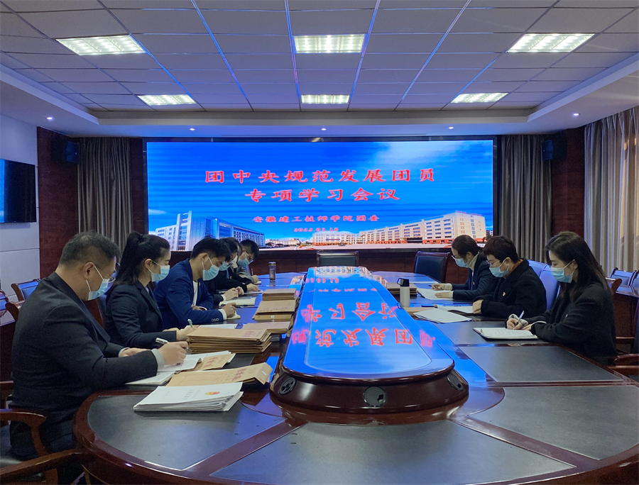 3月18日上午,安徽建工技師學院團委在行政樓三樓會議室組織召開團中央規范發展團員專項學習會議,會議由團委副書記桂萍主持,兩湖校區團總支負責人參加會議。