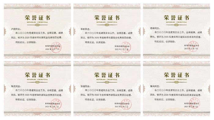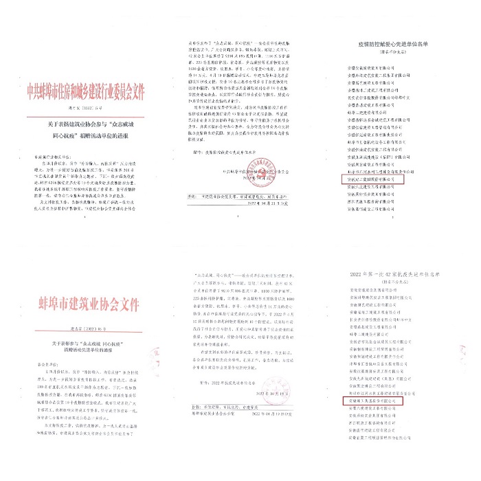 近日,中共蚌埠市住房和城鄉(xiāng)建設行業(yè)委員會、蚌埠市建筑業(yè)協(xié)會分別發(fā)布通報,安徽建工集團榮獲蚌埠市優(yōu)秀建筑業(yè)企業(yè)和2022年抗疫先進單位稱號,對勇于承擔社會責任、為疫情防控工作作出積極貢獻等予以表彰。此外,安建總承包盧朋等6名同志榮獲蚌埠市建筑業(yè)優(yōu)秀項目經(jīng)理稱號。