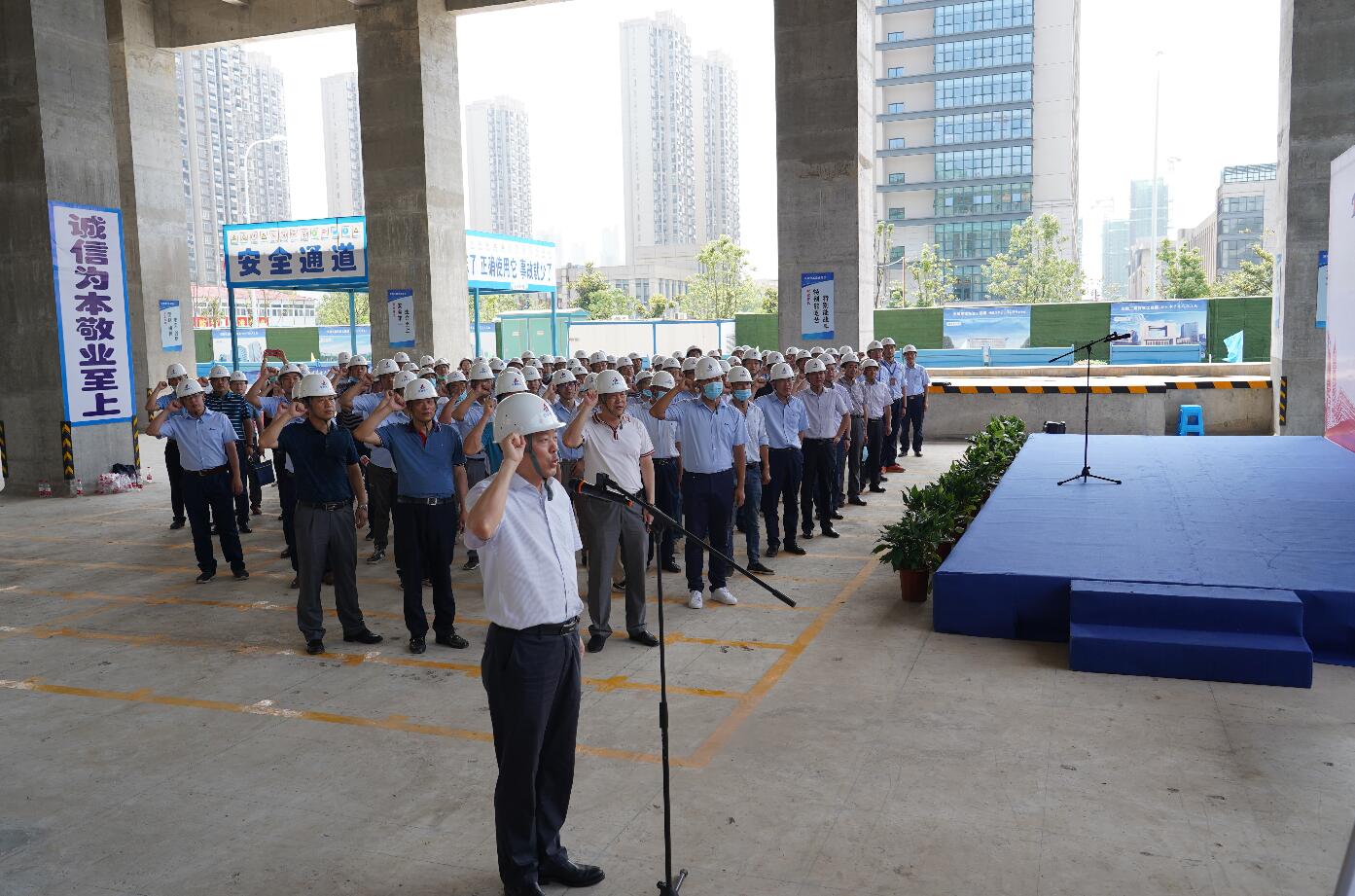 6月2日,集團2020年“安全生產月”活動啟動儀式在安徽三建合肥市第二人民醫院老年護理院項目舉行。股份公司安委會主任、總經理許克順,安委會副主任、副總經理孫學軍出席。安徽三建公司黨委副書記、總經理何洪春及各單位分管安全生產領導、工會、安全等部門負責人,股份機關相關部門負責人等百余人參加了啟動儀式。孫學軍主持儀式。
