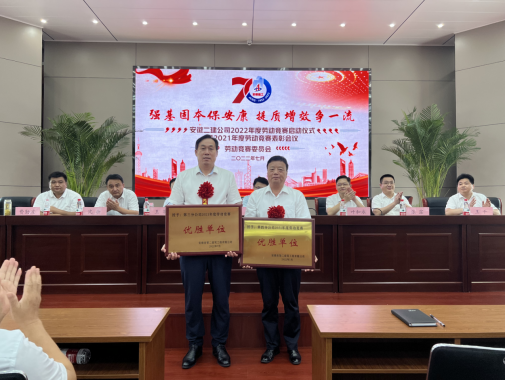 最后,隨著主持人的一聲號令,安徽二建公司“強基固本保安康 提質增效爭一流”勞動競賽正式啟動!參加啟動儀式的公司領導向各參賽單位進行授旗。