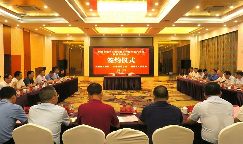 近日,由集團股份公司聯合安徽設計總院聯合中標的桐城市城鄉大建設暨鄉村振興重大項目投資合作協議簽約儀式在桐城舉行。建工股份黨委副書記、董事、總經理李有貴,桐城市委副書記、市長劉存磊,安徽設計總院總裁助理、生產運營中心主任過年生出席儀式并致辭,桐城市委常委、副市長章友厚主持儀式。建工股份副總經理、安建投資總經理、安建和順地產集團董事長朱忠明,安徽設計總院業務總監、建設投資公司總經理、交設建設公司董事長梅應華,桐城市委常委、常務副市長桂穩成分別代表三方簽署投資合作協議。