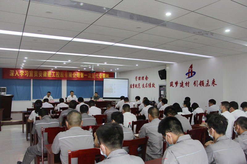 7月19日上午,建工股份副總經(jīng)理、建材科技黨委書記、董事長張鍵赴安徽瑞特新型材料有限公司宣貫建工控股第一次黨代會精神。建材科技黨委副書記、工會主席胡運(yùn)春主持宣講會。